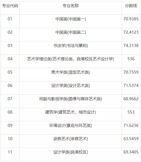 注:艺术理论类,建筑艺术、城市设计专业公布的最低录取分数线系文化课分数线(满分按750分计)。