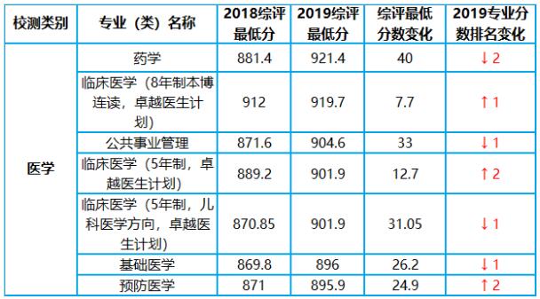 整体分数上升的平均值为18.1分。这个情况和2019年高考分数普遍高于2018年有着很大的关系。其中药学、公共事业管理、临床医学(5年制,儿科医学方向,卓越医生计划)、自然科学试验班(拔尖人才培养计划)、软件工程变化幅度最大。而法学(卓越法学人才基地)专业爆冷降低22.1分。导致这样的情况很有可能是该专业在2018年分数奇高,导致很多2019年的学生望而却步。使得该专业2019年分数下降幅度如此之大。