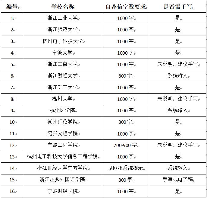 与2019年浙江省属要求书写个人陈述的三位一体院校数量相比,从23所下降到16所,但其中的大部分院校还是一直坚持要求提交自荐信作为全面了解考生基本情况的一个必然途径,数量的下降也并不代表它的价值被削弱。当然,三一院校在要求自荐信的字数和书写方式上也会逐年有细微变动,最主要的表现在,例如宁波工程学院自荐信规定字数由去年的900字变为今年要求的700-900字;另外,2020年浙江财经大学、温州大学和浙江财经大学东方学院启用直接在网报系统中系统输入个人陈述内容功能,不再需要提交纸质个人陈述报名材料。这些要求都可以在三一院校发布的最新三位一体简章中找到答案,报考三位一体需要提交的材料也只需根据要求来准备就可以。