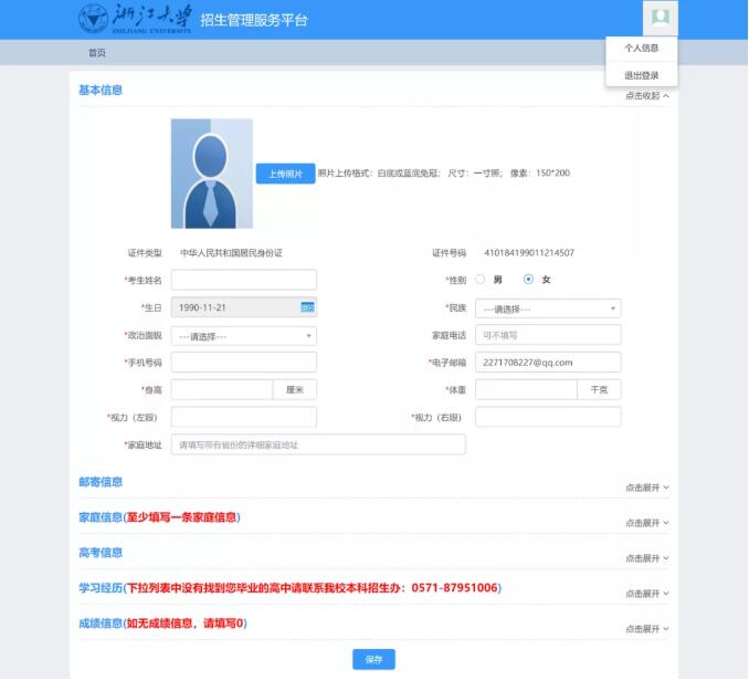 3、个人基本信息填写 。考生按照系统要求,准确填写个人信息。红色*标志的为必必填选项。