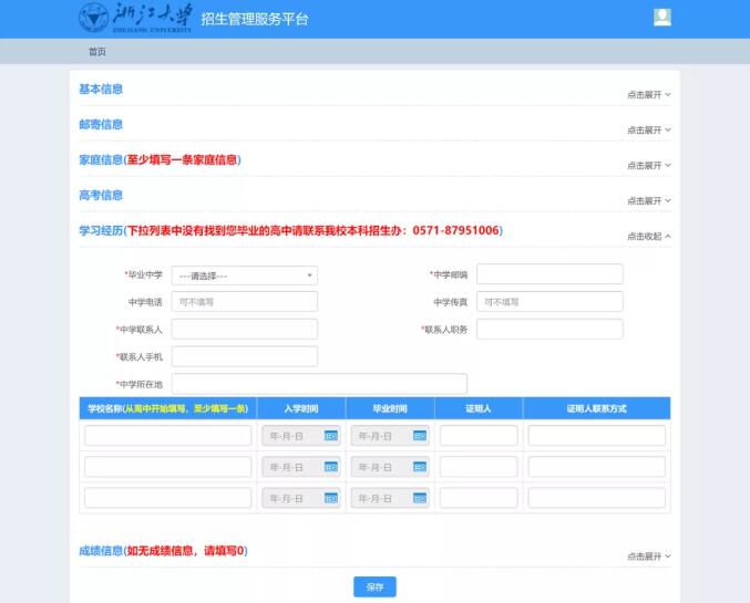8、成绩信息填写。考生按照要求准确填写高中期末真实考试成绩及班级、年级名次。信息填写完成后点击保存。