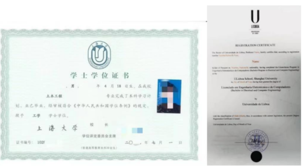 毕业生除了获得上海大学本科毕业证书、学士学位证书外,还可获得葡萄牙里斯本大学学士学位证书。