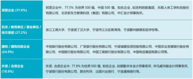 毕业生依然受各类企业和政府机关单位的青睐,大部分毕业生选择在民营企业工作,其次是机关/教育单位/事业单位、国有单位、外资/合资企业。