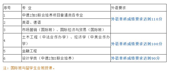 杨志祥:学校外语公共课为英语或德语(中法合作办学专业除外)。对部分专业设定外语单科合格线,要求如下:
