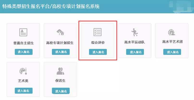 A:部分高校综合评价招生在阳光高考网特殊类型凭条报名,部分高校在该校本科招生网报名,具体可见高校最新招生简章。