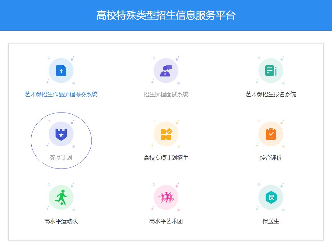 2020年强基计划报名系统为阳光高考平台,报名流程请点击查看