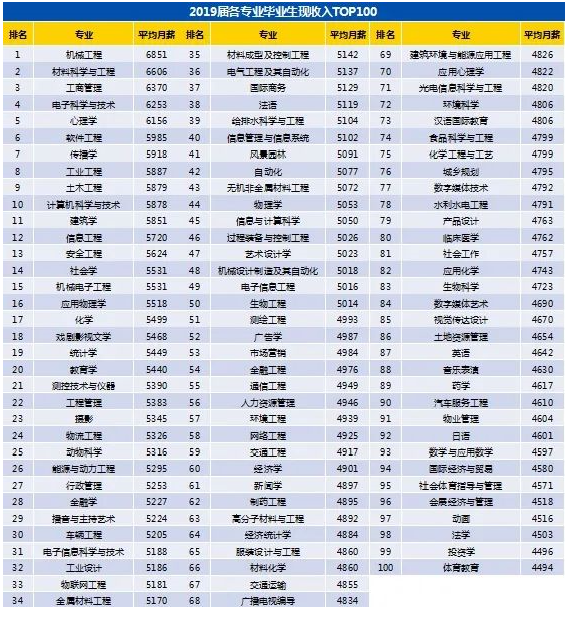 此外,工商管理(6370元/月)、心理学(6156元/月)与传播学(5918元/月)也是高薪专业的代表。