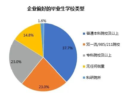 而本次参与求职的毕业生中,近9成毕业生来自普通本科与专科院校,双一流/985/211院校仅占6.4%,双一流/985/211院校毕业生供不应求。