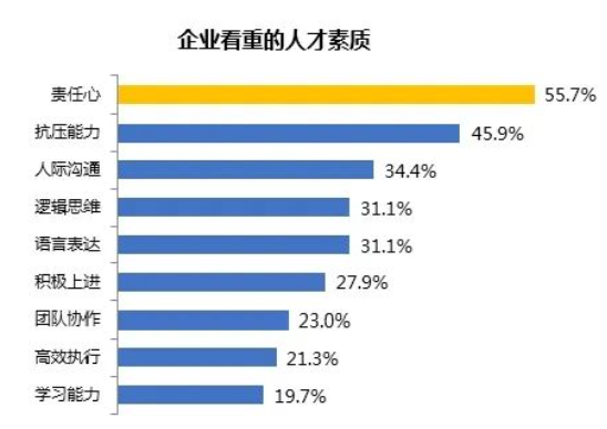 与思维能力、行为能力不同,责任心和抗压能力等软实力很难通过学习实现积累,更多地依赖于个人品质,也成为企业制定人才准入门槛时比较看重的个人素质。
