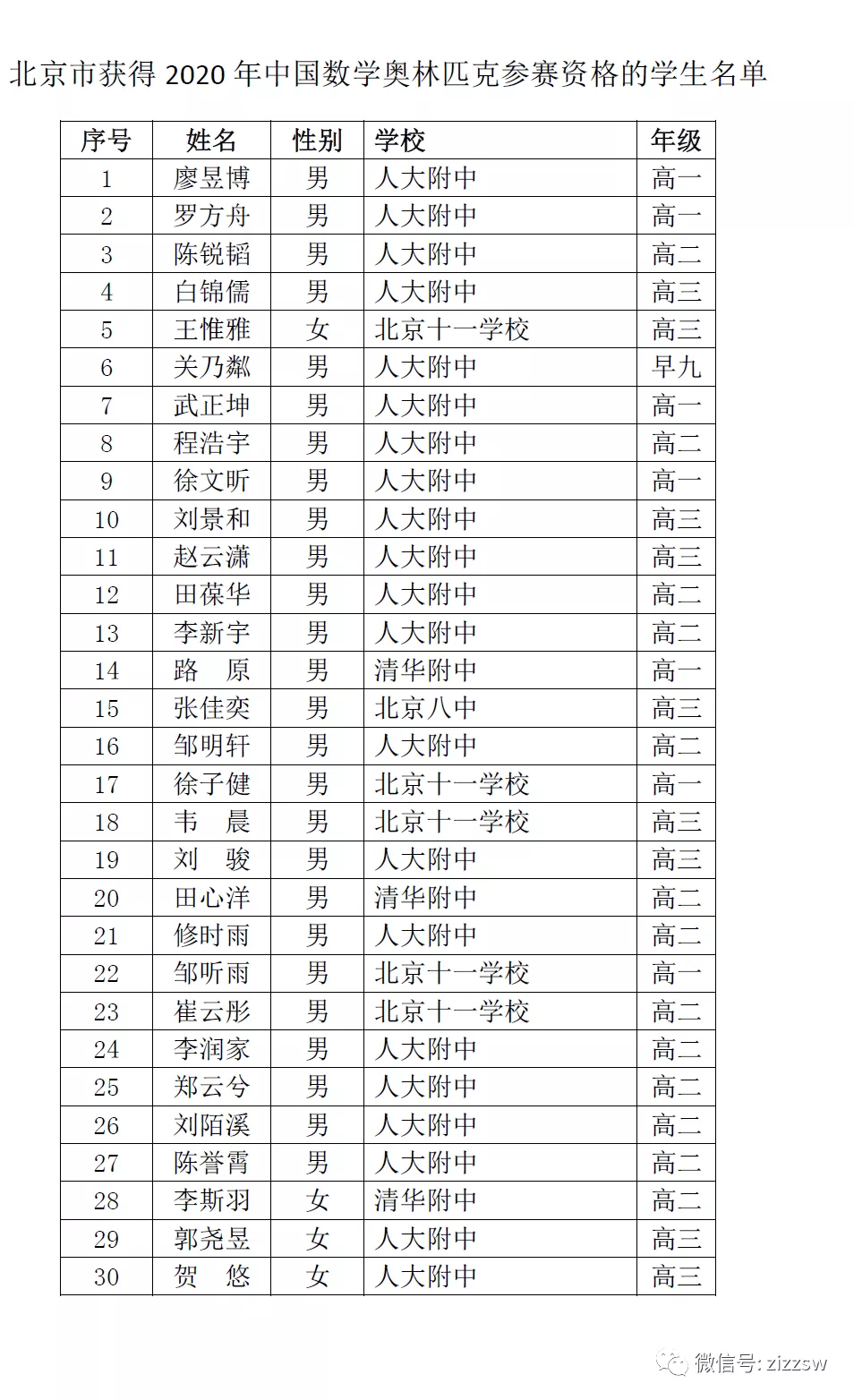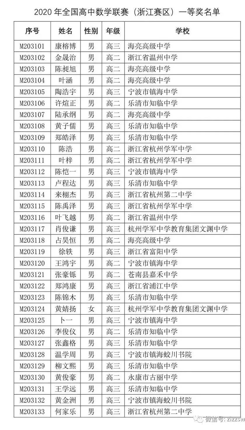浙江、北京、河北等9省市2020全国高中数学联赛省队省一获奖名单公示