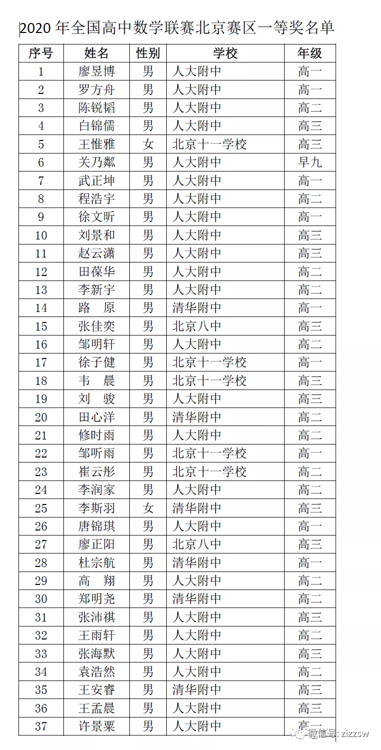 特别提醒:截至10月14日上午微信发布,已经有浙江、北京、四川、重庆、上海、河北、山西、福建、江西等9个省市区公布了2020年全国高中数学联赛获奖信息。