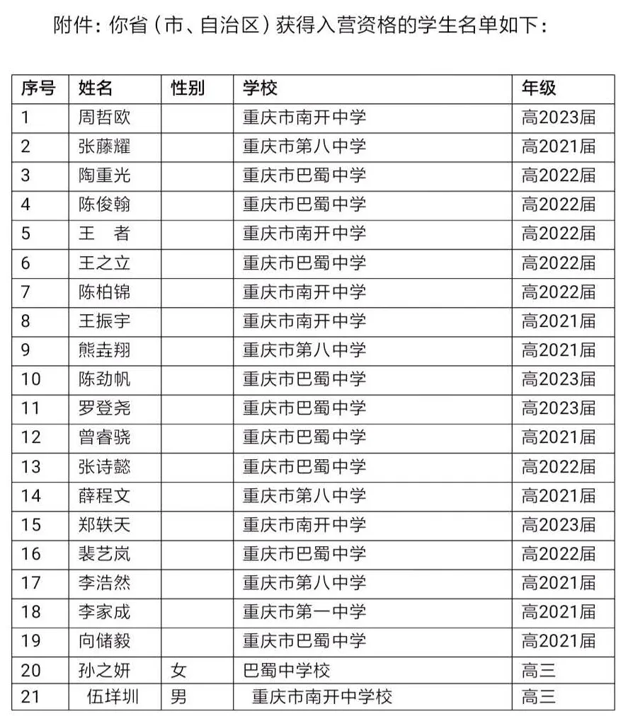 3、关于冬令营:第三十六届全国中学生数学冬令营将于2020年11月22日—28日在湖南省长沙市长郡中学举行,具体通知将于近期发出。