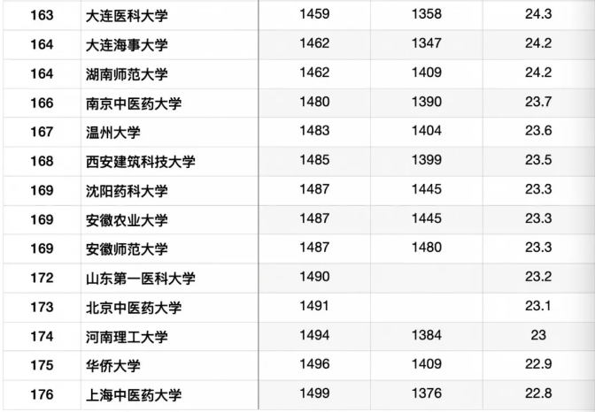 中国大陆入围的176所高校详细名单如下: