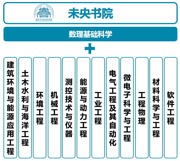 未央书院是清华大学为落实国家“强基计划”而特别成立的五个书院之一,主要负责“强基计划”数理基础科学(含工程衔接方向)专业的理工双学位本科人才培养。着重突出数学、物理学等基础学科在学生未来发展中的支撑引领作用,结合对学生在工程衔接方向的志趣引导,在国家亟需、清华一流的工程专业方向上,探索“理+工”双学位的本科育人新方式,规模化培养数理基础扎实,发展潜力深厚,创新能力突出的理工结合的复合型人才。