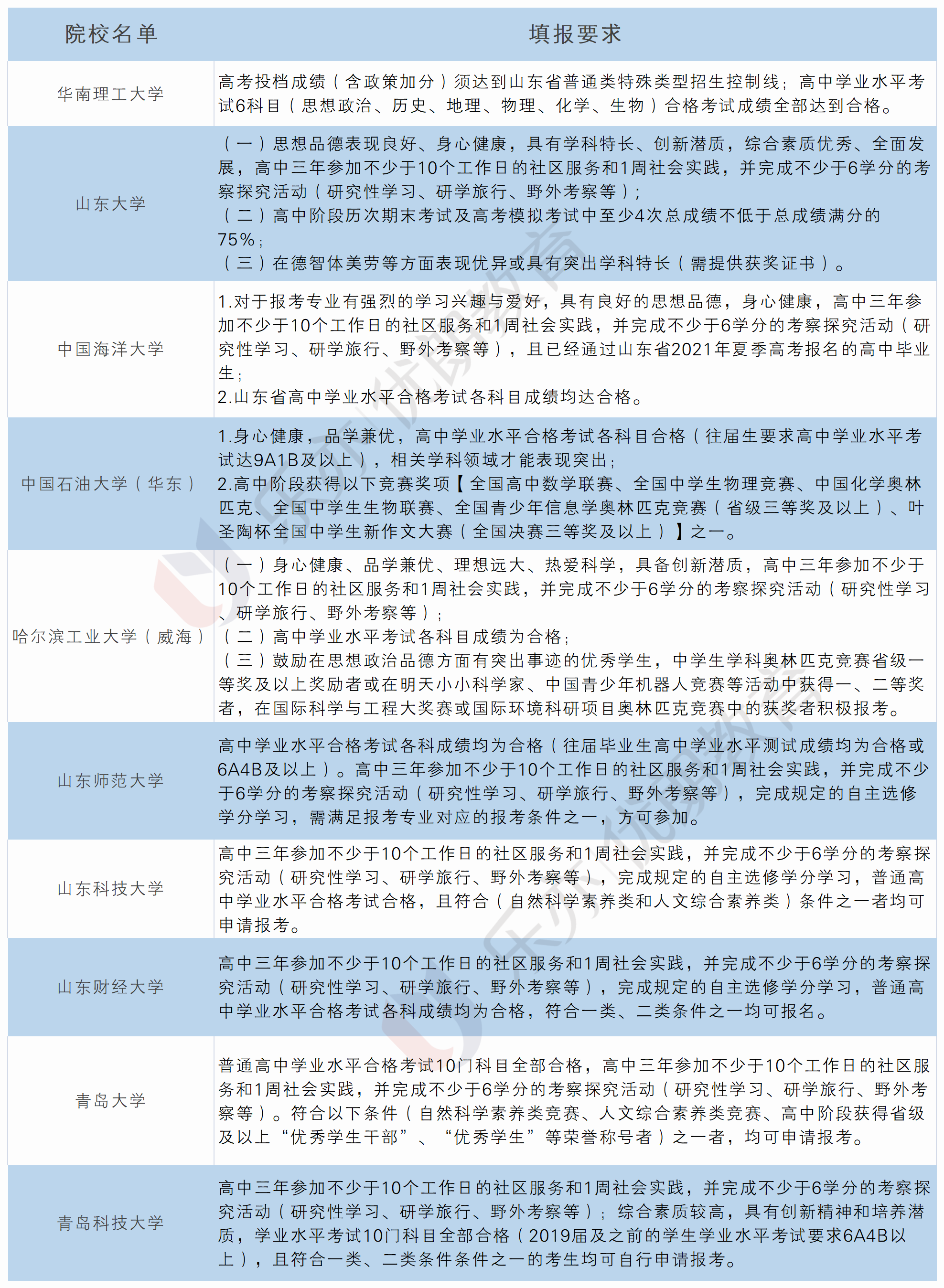 对于山东综评招生高校2021年具体的填报要求,小编整理如下图,可点击图片放大查看。