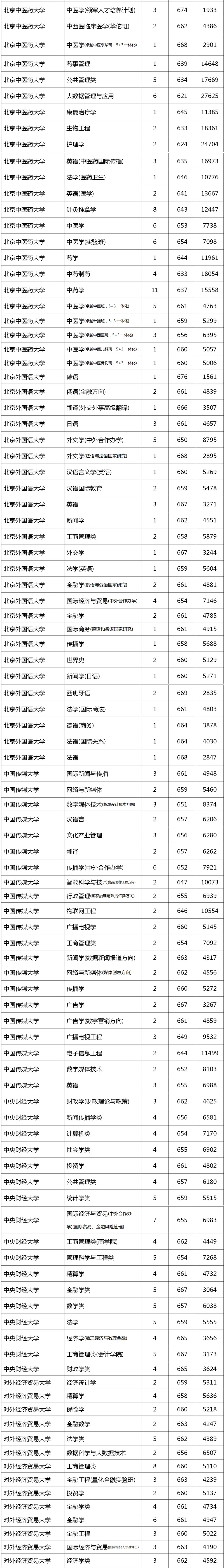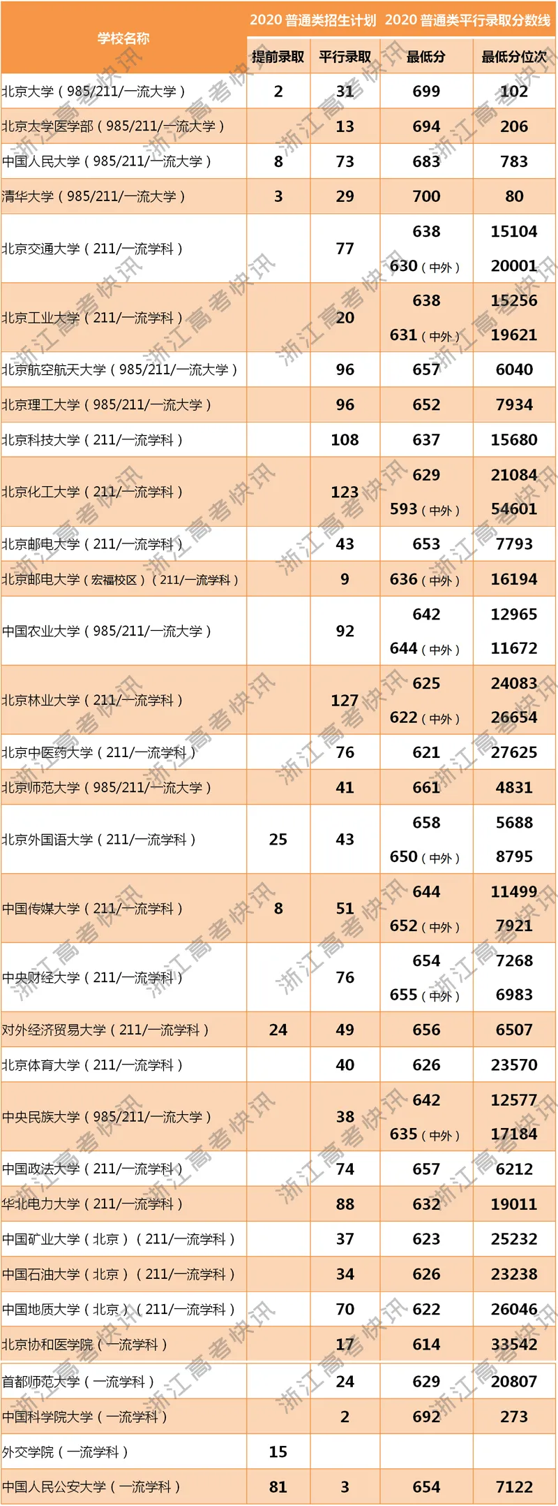 北京985/211/双一流高校2020年在浙江的录取分数线