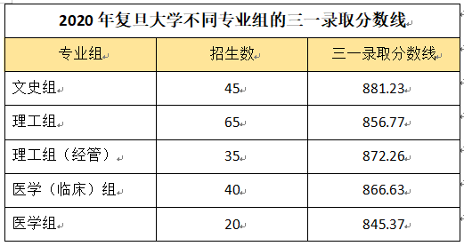 由于2020年各个学校普遍提高了专业填报时对选考物理的要求,导致大量高分段未选考物理的考生涌入复旦文史组,导致其录取分数线大幅高于其他专业组,因此,对于2021年选考物理的考生来说,在报考复旦大学三一时可尽量避开竞争较大的文史组。