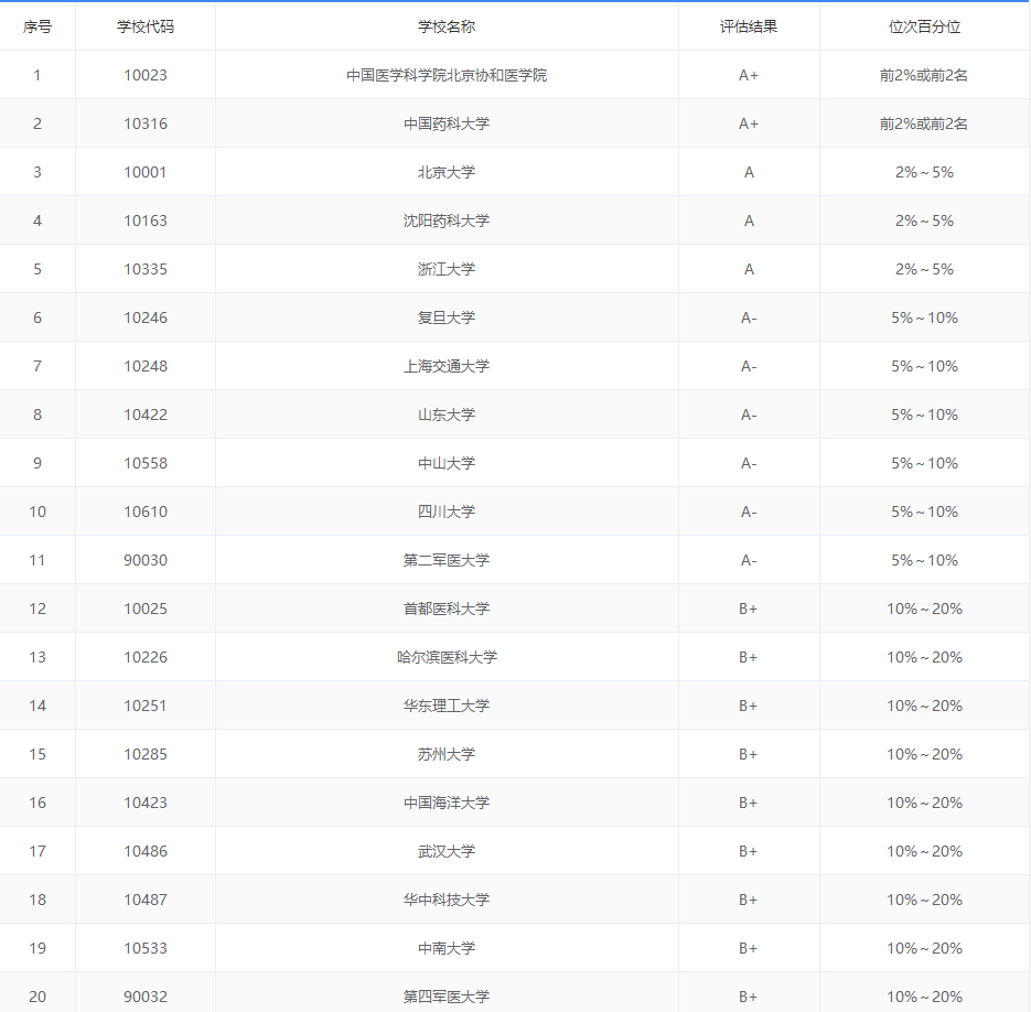 典型代表院校:中国医学科学院北京协和医学院、中国药科大学