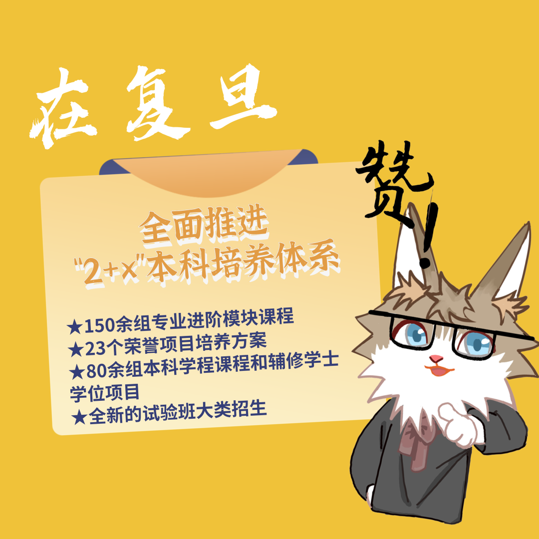 复旦大学构筑的“2+X”本科培养体系贯彻以学生发展为中心理念,为每一位学生提供适合其特点的高质量发展道路。“2+X”体系一方面注重通识教育和专业培养,夯实学生发展基础;另一方面基于学生个性化成长需求,提供专业进阶、跨学科发展、创新创业等多种发展道路。