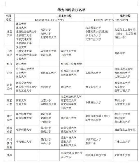 附上一张网上广泛流传的名校收割机——华为招聘院校名单(仅供参考)