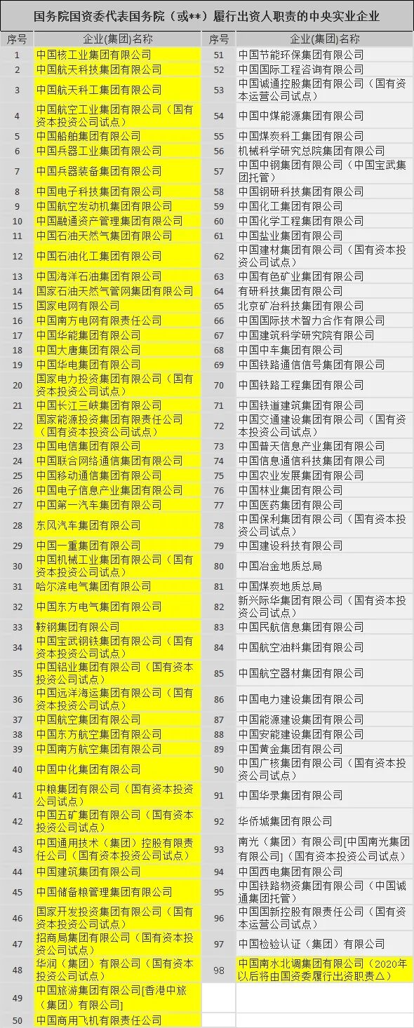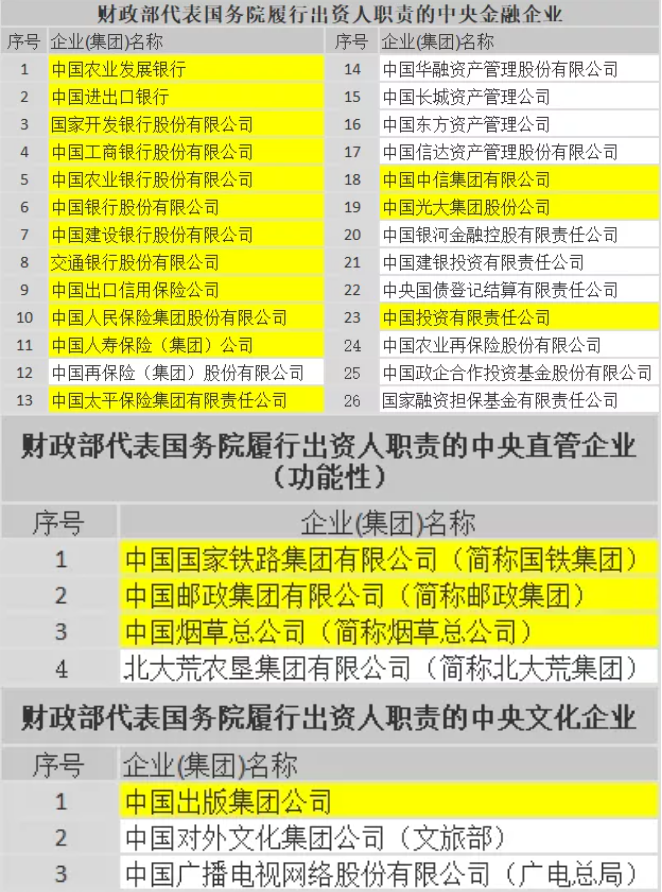 ➤附:最新央企名单