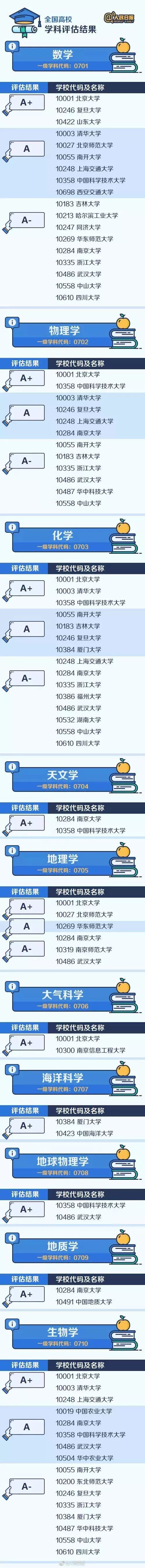 文、理、工、农、医、管理、艺术7大门类都有哪些一级学科?你心仪的学科,哪些学校排名靠前?本文还专门整理汇总了A类学科(包括A+、A、A-三档),来看看这些中国最顶尖的学科名单都分布在哪些大学。强烈建议家长学生收藏,为将来的高考志愿填报做好准备。