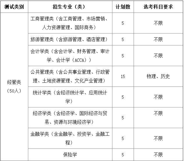 答:2018年,“三位一体”招生的变化可以概括三点:稳计划、降条件、分类别。首先,招生计划为180人,与去年持平。其次,考虑到学业水平测试等级比例的变化,学校调低了报考条件。再次,在“专业+学校”的志愿填报模式下,综合考虑学科门类、选考科目要求等因素,学校把29个招生专业(类)划分为四个测试类别:经管类、文法类、理工类、信管类。