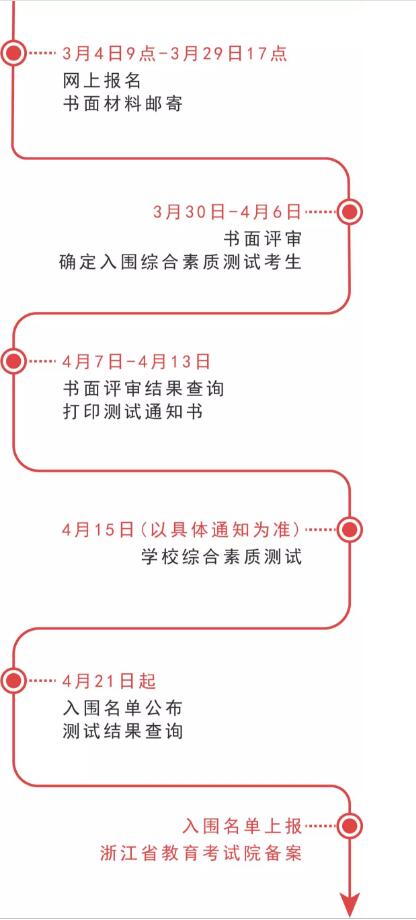 综合素质测试主要考察学生的综合素质和专业学习潜质,由笔试和面试组成,分别占学校综合素质测试成绩的30%和70%。按照综合素质测试成绩从高到低,不超过专业招生计划数5倍的比例确定入围考生名单,在学校招生网上进行公示,并报浙江省教育考试院备案。考生可通过学校招生网查询综合素质测试成绩。