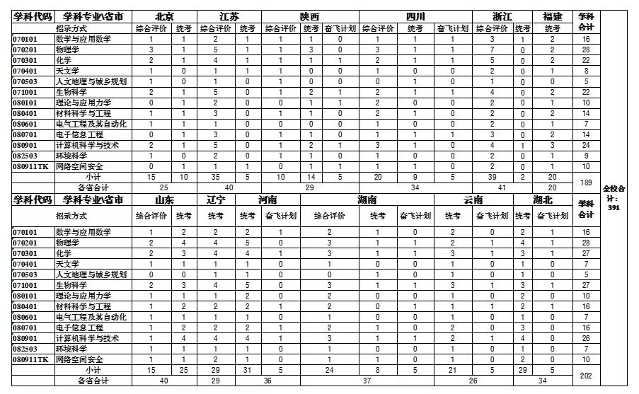 2、各专业招生计划