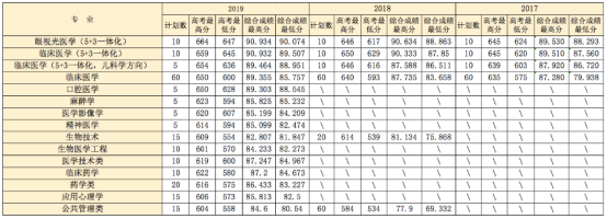 2017-2019年温州医科大学三位一体录取统计表