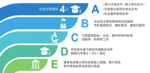 学制为8年,是一门以眼睛为主要工作对象,将传统眼科学与现代视光学有机结合,以手术、药物、光学手段等综合方法,以改善视觉功能、提高视觉质量为目标的医学学科。本专业毕业生将拿到4证:硕士毕业证、硕士学位证书、住院医生规范化培训证书和执业医师资格证书。