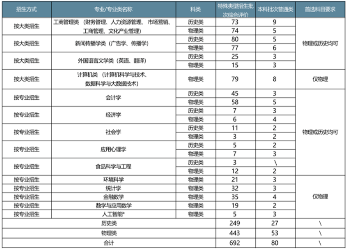 今年UIC继续在广东省实施多元化招生,综合评价录取计划招生人数692人(首选科目历史249人,首选科目物理443人),普通本科批次计划招生人数80人(首选科目历史27人,首选科目物理53人)。