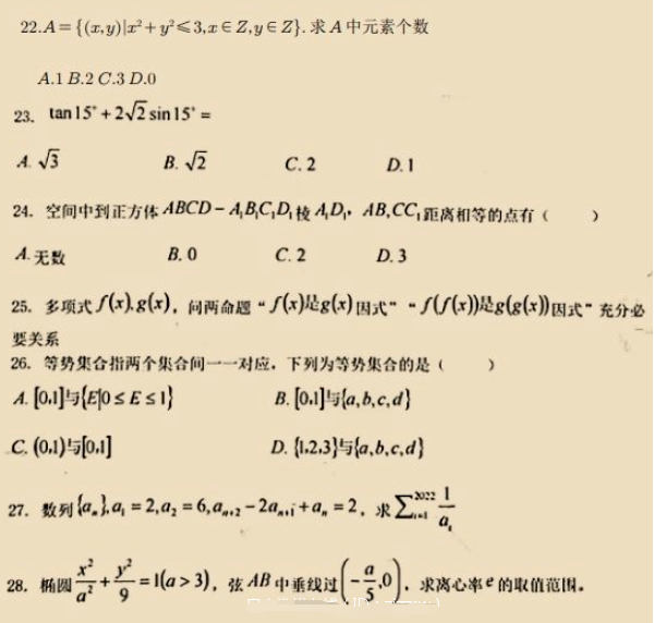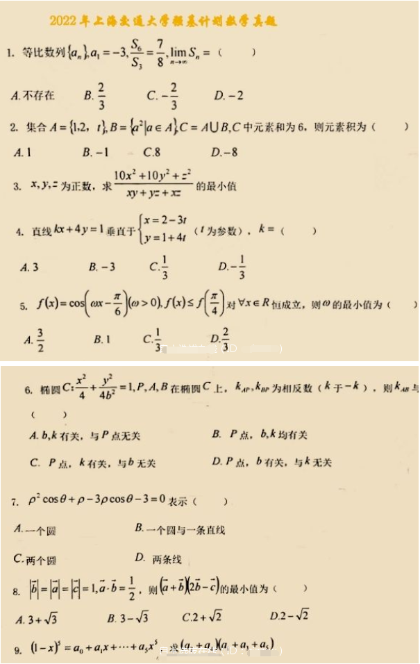 2022年上海交通大学强基计划校测试题