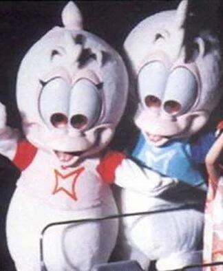 第12届亚运会的吉祥物是构成亚运会标志的'H'字型的两只白鸽,一雄一雌。这是亚运会吉祥物首次以一对吉祥物的卡通造型出现,雄的取名为“普普”(Poppo),雌的取名为“库库”(Coccu)。它们的造型活泼可爱,特别引人注目,而且具有多重含义。象征和平的白鸽作为广岛亚运会的代言,寓意着世界和平的愿望与反战精神。组委会希望借由这两只吉祥物,散播和平友谊的种子及温馨。