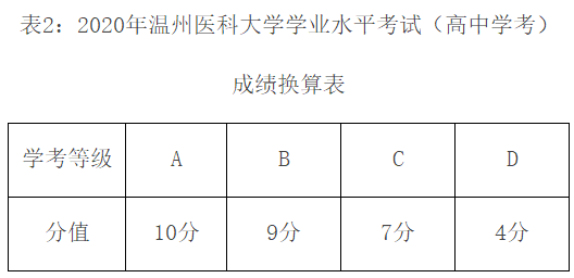 2020年温州医科大学三位一体综合成绩按“学业水平考试(高中学考)成绩(折算成满分100分)×20%+综合测试成绩(折算成满分100分)×20%+高考文化分总分(折算成满分100分)×60%”计算形成。