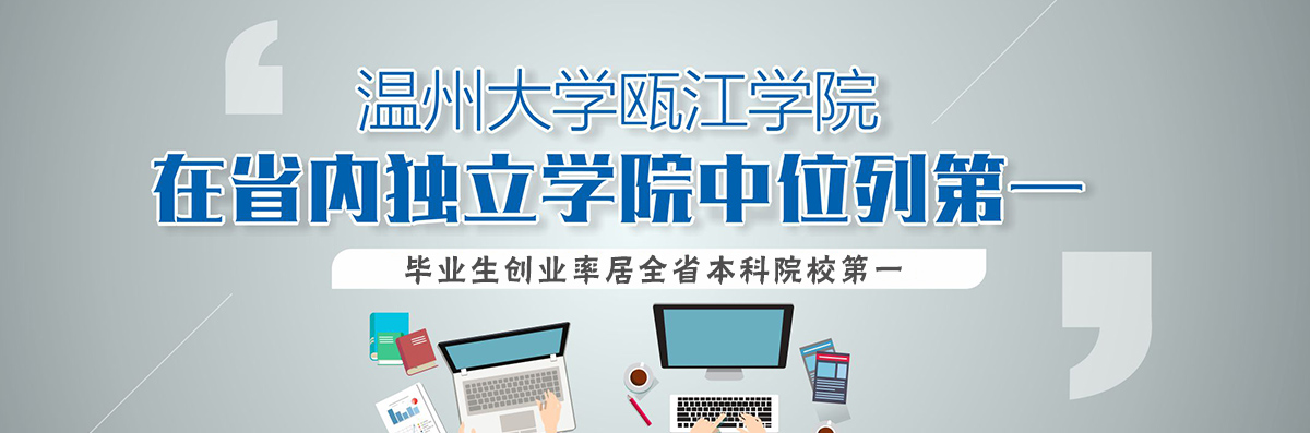 温州大学瓯江学院,2000年经浙江省人民政府批准设立,2004年由国家教育部批准为独立学院。下设六个二级学院和一个公共教学部,涵盖经济学、法学、教育学、文学、艺术学、理学、工学和管理学八大学科门类,44个本科专业,全日制在校生7500余人。在浙江省2015-2016学年普通本科高校分类评价结果之教学为主型(多科性)独立学院中位列第4名;武书连2017中国独立学院学科排行榜中,自然科学排名第八,理学排名第三,工学排名第八,法学排名第十;2015年,全国独立学院科研竞争力评价研究报告发布,位居排行榜前10;2014年,武书连“中国独立学院排行榜”,学院在全国300多所独立学院中跻身前20位。学院是国家级创业教育人才培养模式创新实验区、浙江省人才培养模式创新实验区、浙江省创业教育研究基地、温州市文化创意产业园、温州市小企业创业基地、温州市信息安全中心、温州市国家大学科技园分园。