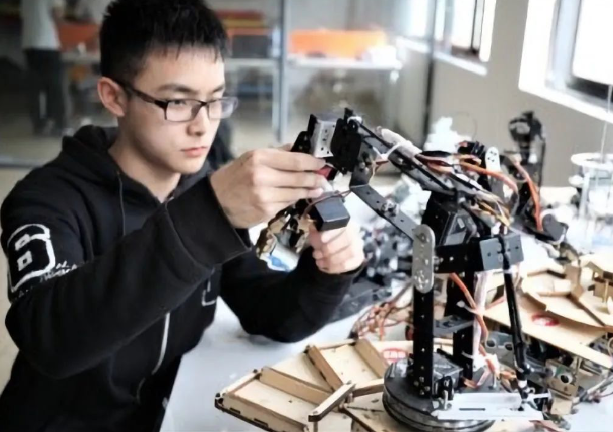 学生在调试机械臂