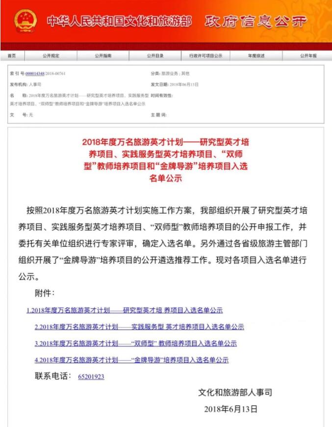 旅游专业学生入围国家文旅部“万名旅游英才计划”
