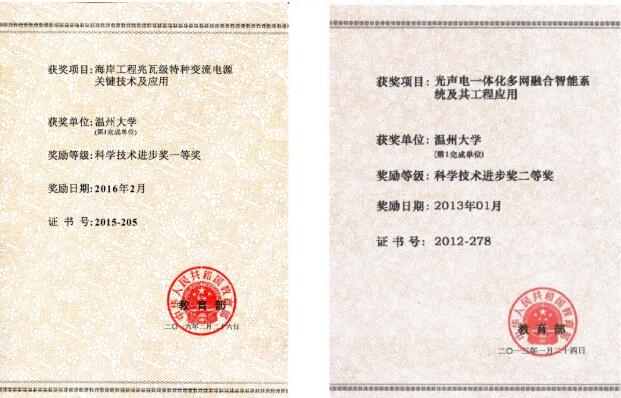 “实验室是一个推动我国海岛及港口特种供电电源发展的科研平台。”戴瑜兴举例介绍,实验室里的兆瓦级变流关键技术研发平台专门应用于大型港口,研发团队通过电源装备来提升港口与船厂落后的供电技术,大大减少环境污染。戴瑜兴等人在这个领域精耕细作20年,终于实现港口与船厂特种变流电源装备研制的全面突破,完成了“海岸工程兆瓦级特种变流电源关键技术及应用”。据估算,以一艘1.5万吨的轮船为例,该技术一年可节能30%左右。该项成果因此荣获国家教育部科学技术进步奖一等奖,成功实现温大在该奖项一等奖零的突破。
