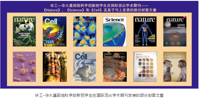 2009年联合组建“基因组学创新班”,借助学校多学科优势和深圳华大基因研究院一流的科研队伍平台以及国际学术影响力,形成了“华工模式”的创新人才培养体系。先后共有113人次以第一作者、并列第一作者或署名作者身份在国际学术期刊上发表研究成果93篇,其中53人次以第一作者、共同第一作者或署名作者身份在《Nature》、《Science》、《Cell》等国际顶尖学术期刊及其子刊上发表高水平论文40篇。