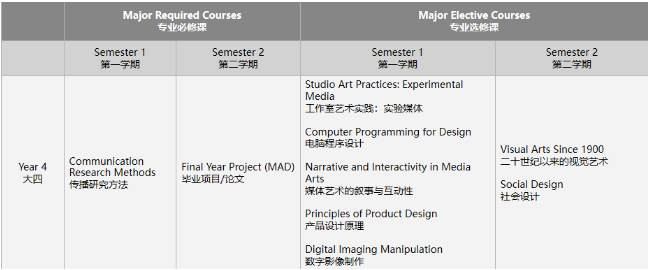 媒体艺术与设计专业隶属文化与创意学部,学科于2016年开设,主要包含创意表达、艺术设计、跨学科合作与交流等方面。