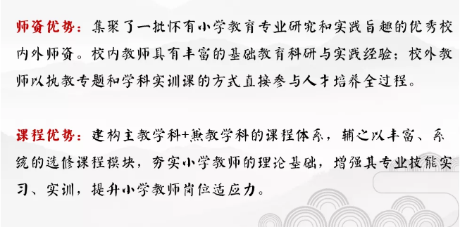 毕业生主要为胜任多学科教学的小学教师,直接服务于山东省基础教育,也可选择继续攻读小学教育专业硕士,或学术型硕士,为国内外高校研究生招生提供优质生源。
