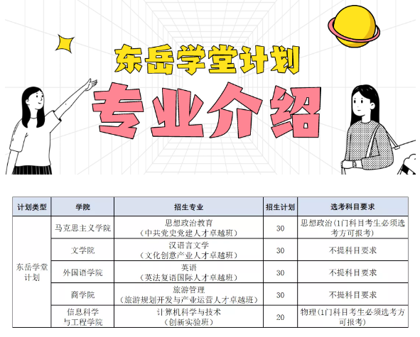 3.专业特色:东岳学堂综合利用国内外一流的优质教育资源,借鉴世界一流大学的培养模式,在录取方式、培养模式、教学方法、制度创新等方面进行全面的探索,让最富有潜力的学生在最具创新力的平台上成长。