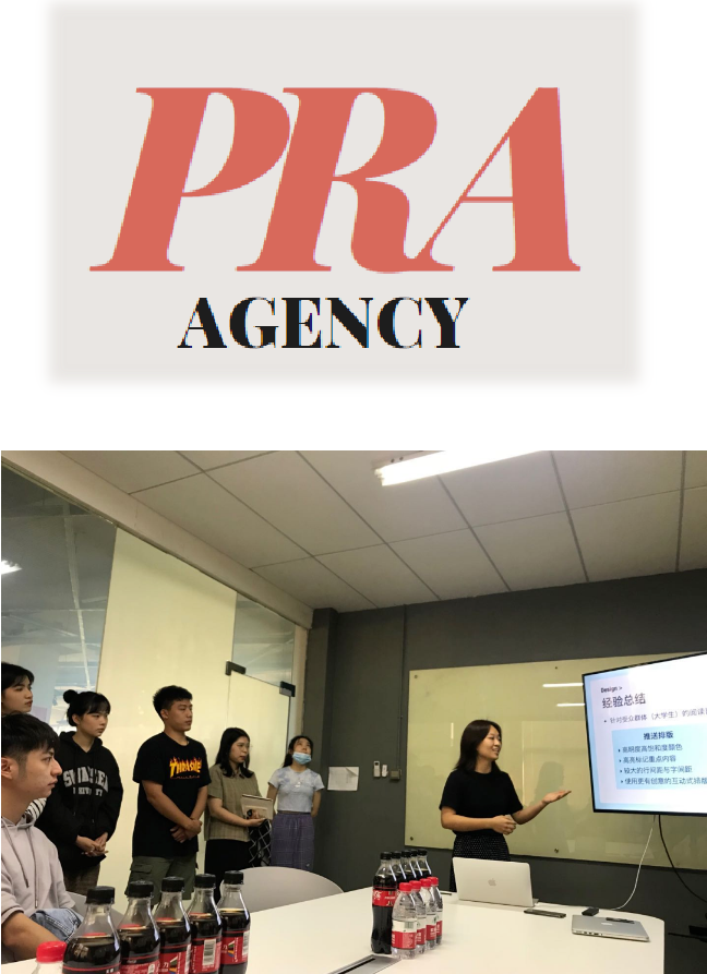 PRA Agency是一个由PRA教师指导、由行业经验丰富的专业人士提供建议、以优秀的PRA在读学生为主体、并服务于行业的公关广告机构。PRA Agency秉承以“为营造美好世界的策略传播”为理念,以敏锐的判断力、创意和有效的执行力帮助行业客户打造其品牌忠诚度。机构作为一个学习、服务、研究、实验和创新的平台,为PRA学生寻求深造和就业提供了温室的培养环境,使学生有机会和自由践行实验性和开创性的概念和想法。