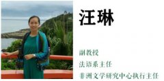 汪琳,博士,副教授,法语系主任、非洲文学研究中心执行主任。主持省部级项目2项,参与国家社科基金重大项目2项。近年来,出版编著1部,译著3部,担任中国改革开放与发展实践法
