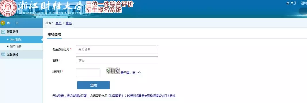 1、登录我校“三位一体”报名系统(http://swyt.zufe.edu.cn/)