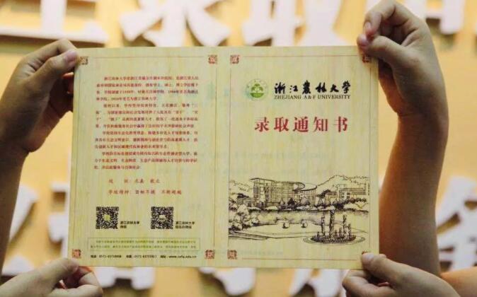 浙江农林大学的录取通知书可不是一张简简单单的纸,它是展现农林特色的名片。整体以毛竹为原材料,运用学校自主研发的刨切微薄竹技术制作并印刷而成。这项技术技术曾先后获8项国家专利和技术发明奖二等奖。最关键的是,这一张张通知书还做了防腐处理,可以永久保存,真是太贴心了!