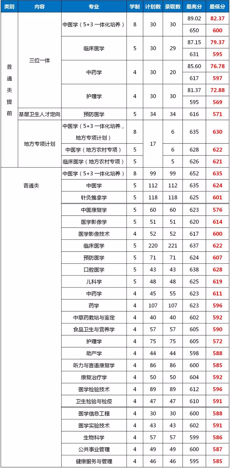 2019年浙江中医药大学浙江省分专业录取分数线