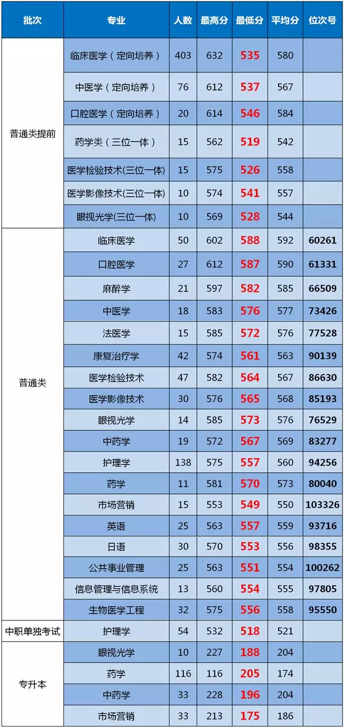 2019年温州医科大学仁济学院浙江省招生录取数据