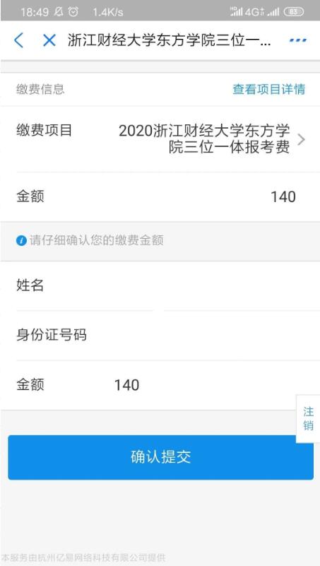 2020年浙江财经大学东方学院“三位一体”综合测试报考费缴费流程
